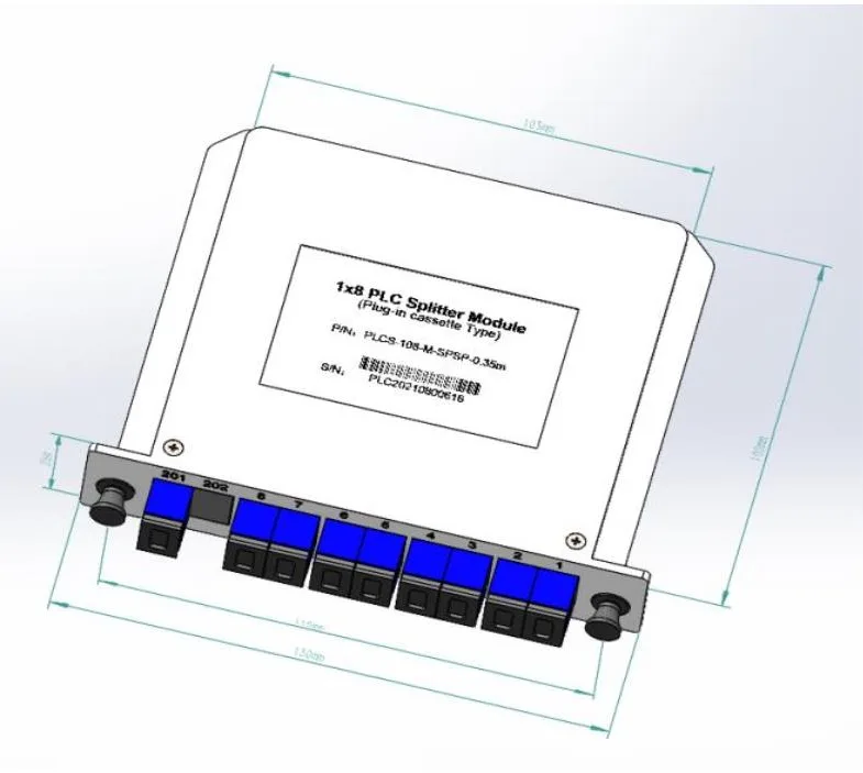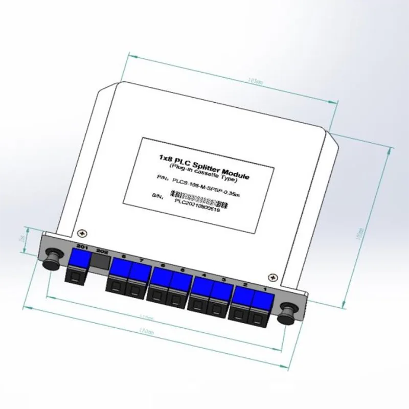 1x4 / 1x8 PLC plug-in kassett splitter spesifikasjon